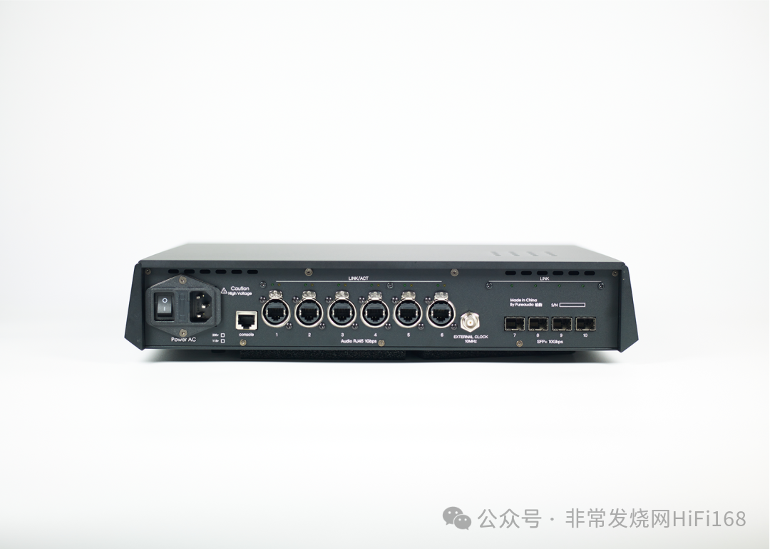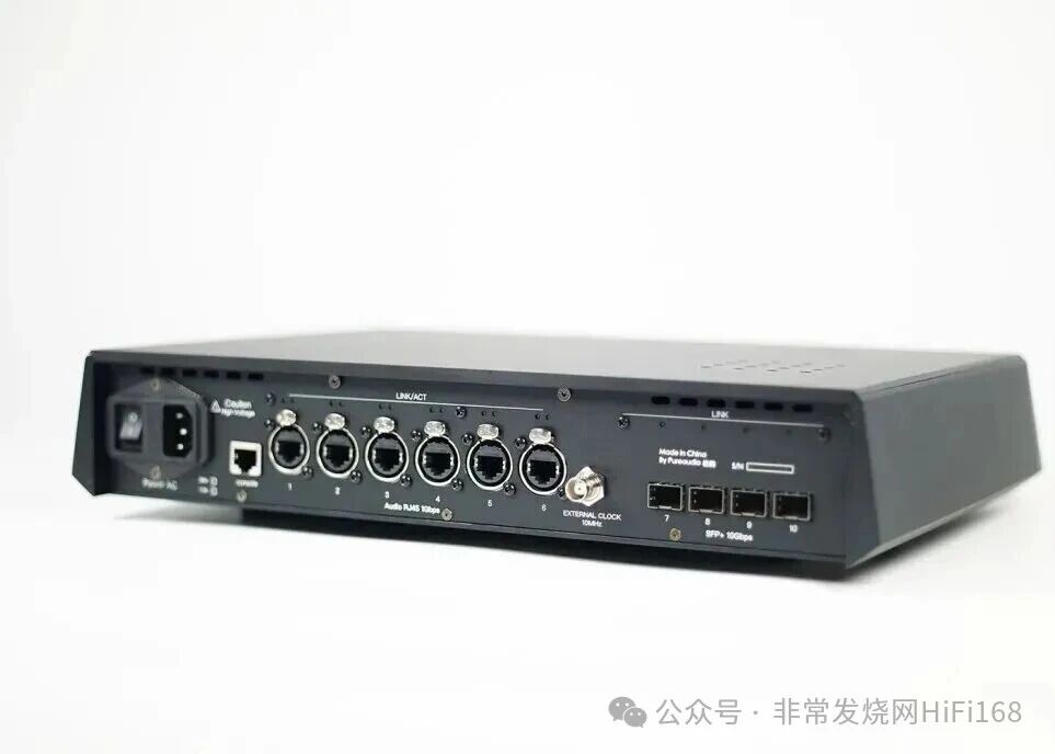 4个万兆SFP+光口,支持光纤隔离,彻底杜绝地线干扰,为Hi-end音频串流系统提供全光网级的扩展能力