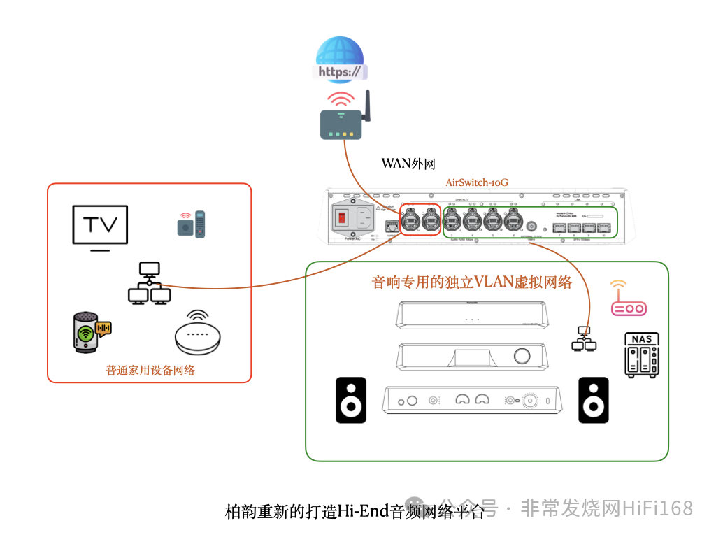 AirSwitch-10G不仅仅是一台交换机,更是一台网络净化设备,是整个网络串流音频系统的时钟中心和网络枢纽。它通过: