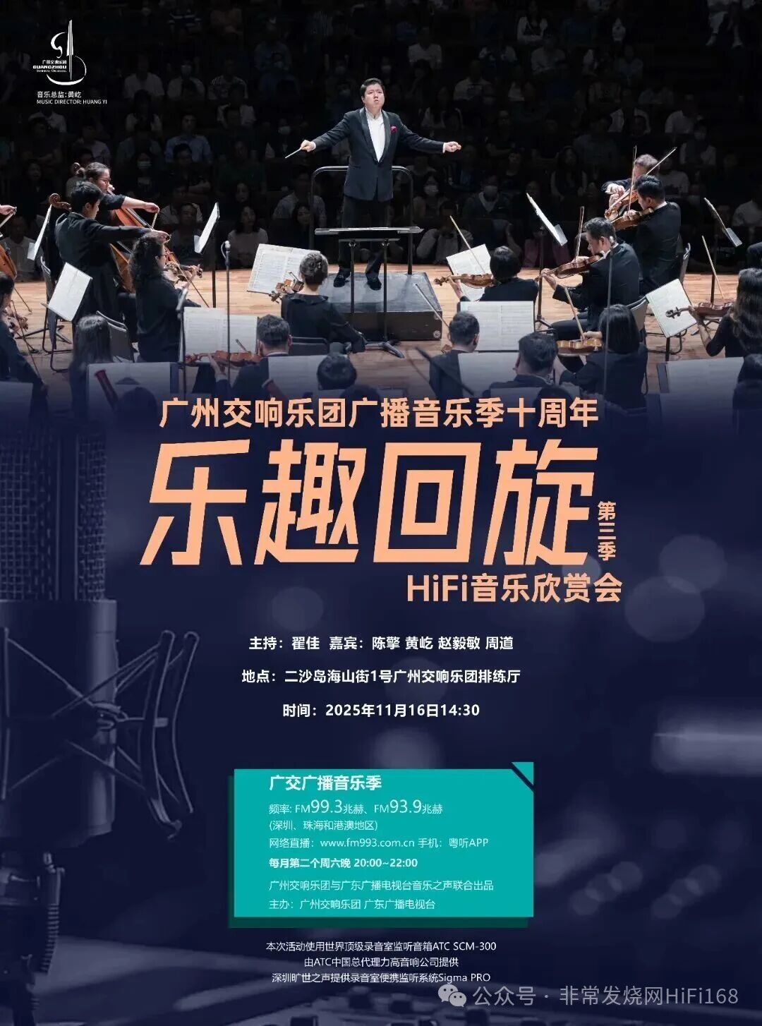2025年11月16日,《乐趣回旋》第三季HiFi音乐欣赏会将在二沙岛海山街1号广州交响乐团排练厅举行。让我们在曾回荡于电波中的旋律里重逢,共同为广交广播音乐季编织的音乐时光,落下难忘的注脚。