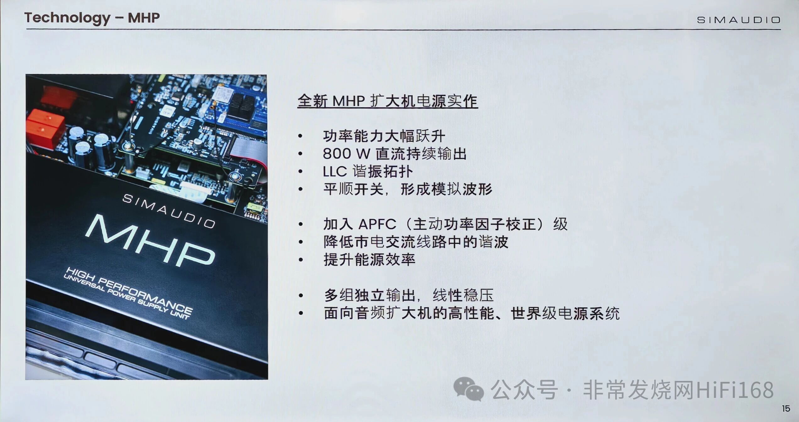 MHP电源为混合型设计,前端采用开关电源实现多电压适应,后端则为线性电源,整体性能较前代提升三倍以上,在调节、滤波和输出稳定性方面均有显著优化。该电源首次应用于功放机型,兼顾全球通用性与高保真供电需求。