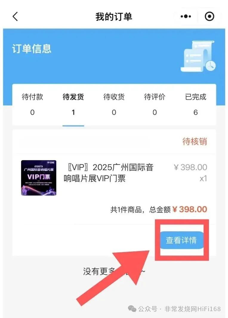 在待发货中选择“VIP门票”