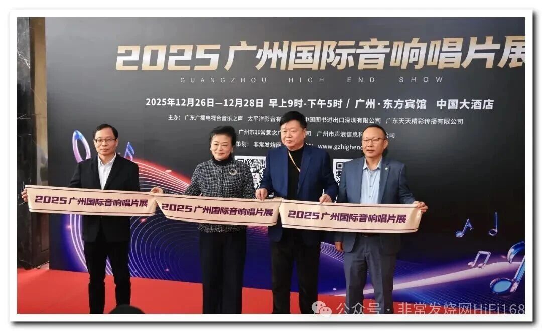 2025年12月26日,由广东广播电视台音乐之声、太平洋影音有限公司、中国图书进出口深圳有限公司、广东天天精彩传播有限公司联合主办的广州国际音响唱片展,在广州东方宾馆与中国大酒店正式拉开帷幕。开幕式现场气氛热烈,广东广播电视台党委委员、副台长周炜等领导亲临现场,共同为展会剪彩,见证这场集结全球视听力量的行业盛典启幕,标志着为期三天(12月26-28日)的“发烧级”视听盛宴正式开启。
