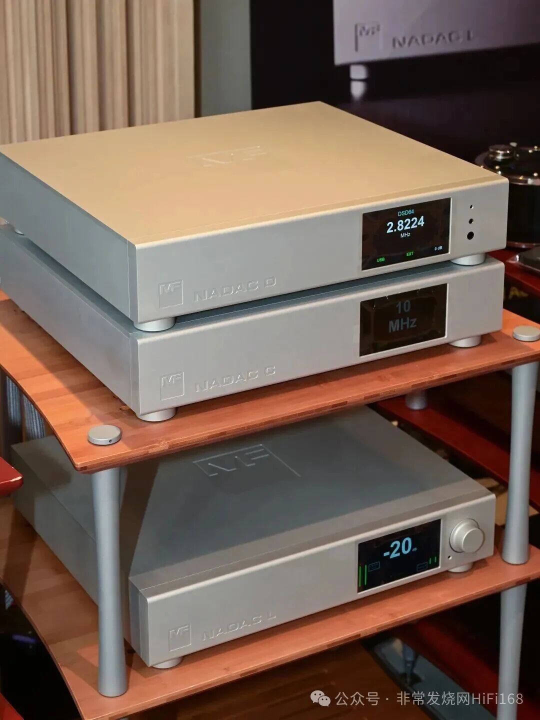 公司⼀经成⽴,便⽴即全⼒投⼊了新⼀代 NADAC 系列产品的研发。⽽公司全员抱定的决⼼和⽬标就是⻘出于蓝⽽胜于蓝!于是⾃ 2022 年⾄今 MF 就已推出了三件新⼀代 NADAC 系列产品:即 NADAC C 超低噪声⾳频时钟;NADAC D 真⼀⽐特数模转换器和 NADAC L 数控模拟前置放⼤器。其中 NADAC C 和 D 是于 2024年在慕尼⿊ Hi-End 展上⾸发,⽽ NADAC L 则是⾸次亮相于⼀年后的 2025 慕尼⿊ Hi-End 展。