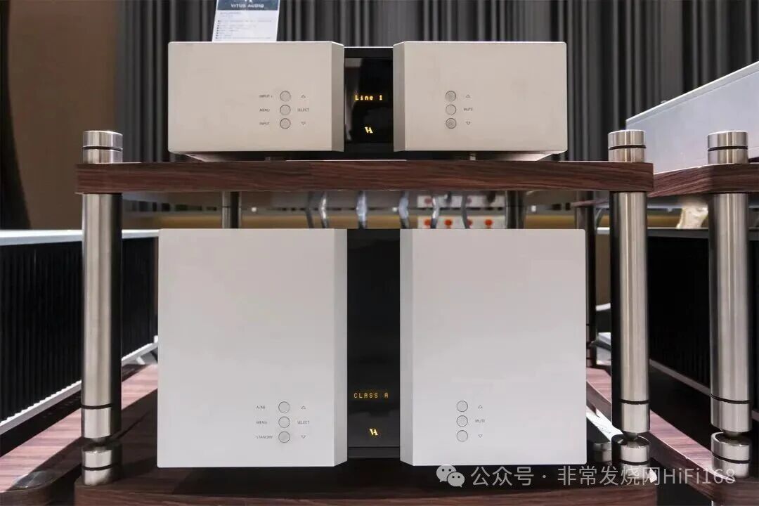 此次现场试听体验是近两年来,我首次在ESTELON Extreme MK II上感受到如此平衡且温润的声音特性。这份虽不算惊艳但又超出笔者预期的声音表现(对笔者来说不算惊艳,是本该就应该如此惊艳),一方面得益于广州域丰音响精心打造的大听音室,合理的声学结构有效消除了驻波干扰,为声音还原提供了纯净的空间基础;另一方面则离不开丹麦Vitus Audio(维达斯)MP-L201 MKII、MP-M201 MKII新款旗舰电源分体前后级的强力加持。尤为值得一提的是,维达斯MP-M201 MKII电源分体单声道后级搭载了150瓦甲类和600瓦甲乙类两组分组同时输出的功能,分别精准推动Extreme MK II的中高音组与低音组,让整套系统实现了声色俱佳、动静自若的稳定表现。