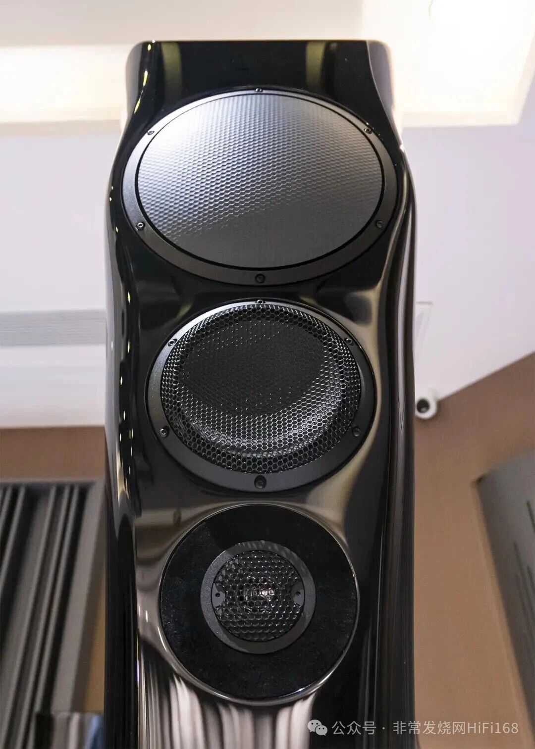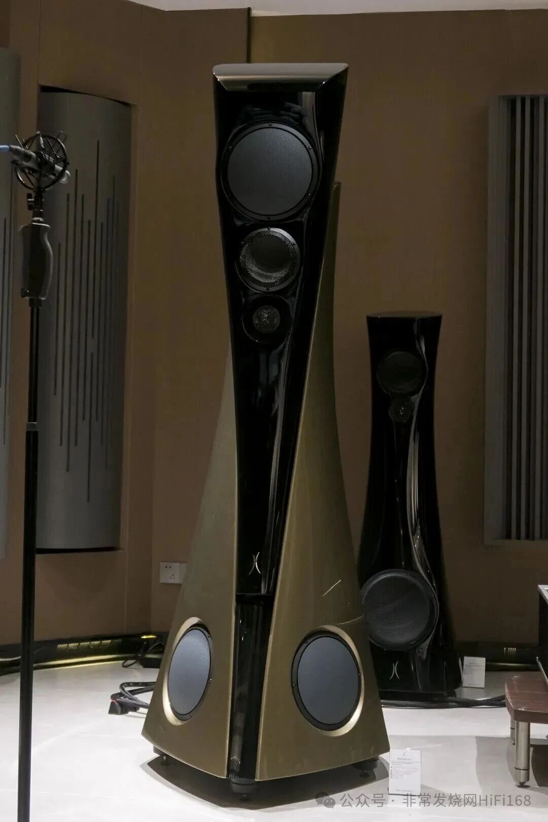 提及ESTELON,就不得不提其标志性的“小蛮腰”造型,好奇这一设计是否由其女儿主导,且中间型号因造型和体积问题限制难以实现多单元或大口径配置。Alfred纠正了设计初衷的误解:“我们的外形设计绝非为了美观而设计,核心是服务于声学需求。” “这种弧形线条的设计,首先是基于声学特性的考量。传统方正箱体容易产生驻波,反射声波路径单一会叠加反射,导致箱体内的声音驻波;而ESTELON的箱体没有任何平行面,能有效消除驻波。”Alfred补充道:“品牌logo的弧形设计也呼应了这一理念,它不仅是视觉符号,更象征着立体声波的传播与聚焦,传递出声音中的张力与情感,而非冰冷的线条。”