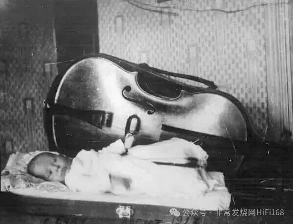 图为罗波维奇婴儿时期睡在其父亲的大提琴盒里