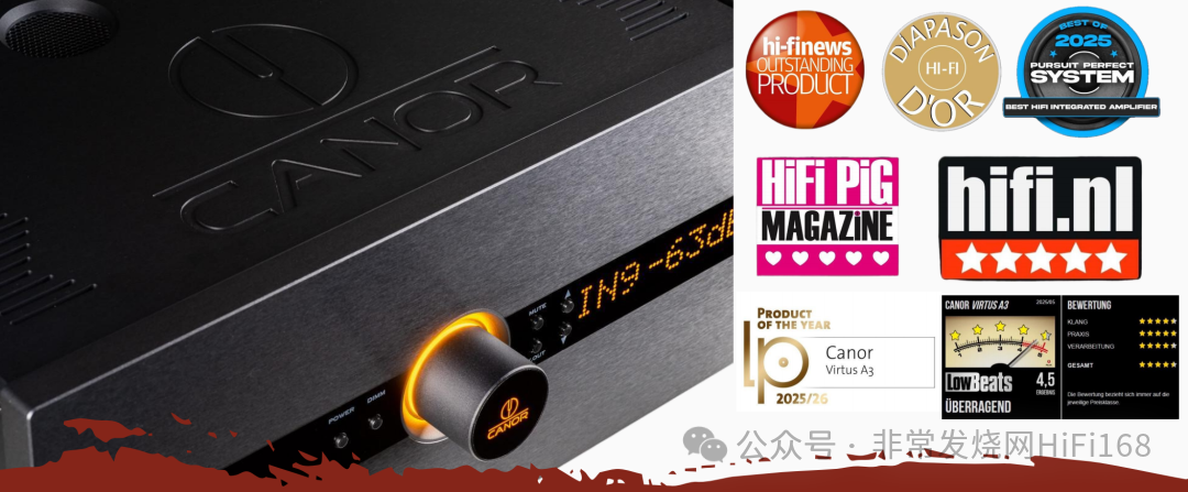 在法国权威媒体 Diapason 的 Diapason d’Or Hi-Fi 奖项体系里,Virtus A3 被收录为获奖产品之一,展示了其在声音表现与技术整合方面获得行业认可。