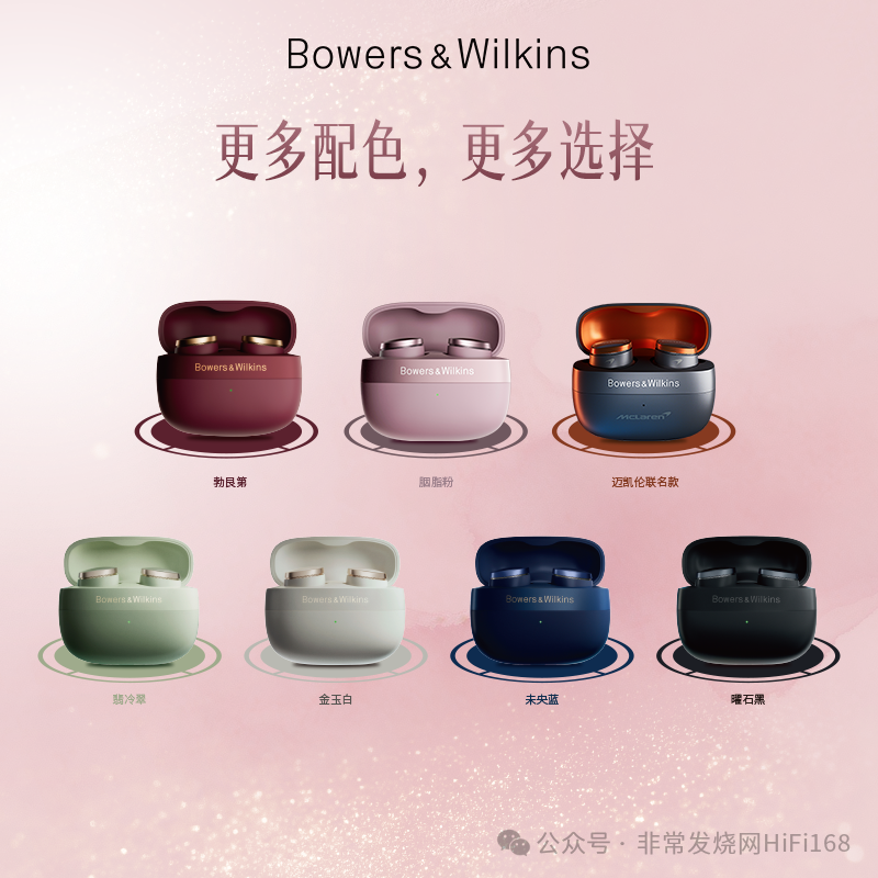 Pi8胭脂粉正是从这种东方色彩中汲取灵感,通过温润克制的粉色调与精致金属工艺的结合,使耳机呈现出含蓄而高级的视觉气质。这样的设计不仅延续了宝华韦健一贯的精致工业设计语言,也让产品在科技之外多了一层文化与审美的表达。