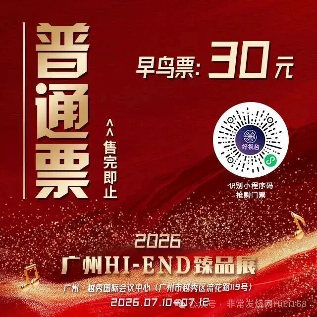 经过近一年的精心筹备,第二届广州HI-END臻品展将于2026年7月10日至12日,在广州越秀国际会议中心再度启幕。展会早鸟票现已正式上线发售。在首届成功举办的基础上,本届展会全面升级——不仅延续高端HI-END音响的极致呈现,更进一步融合经典音乐文化、影像科技表达与沉浸式现场体验,打造一场多维度的感官盛宴。