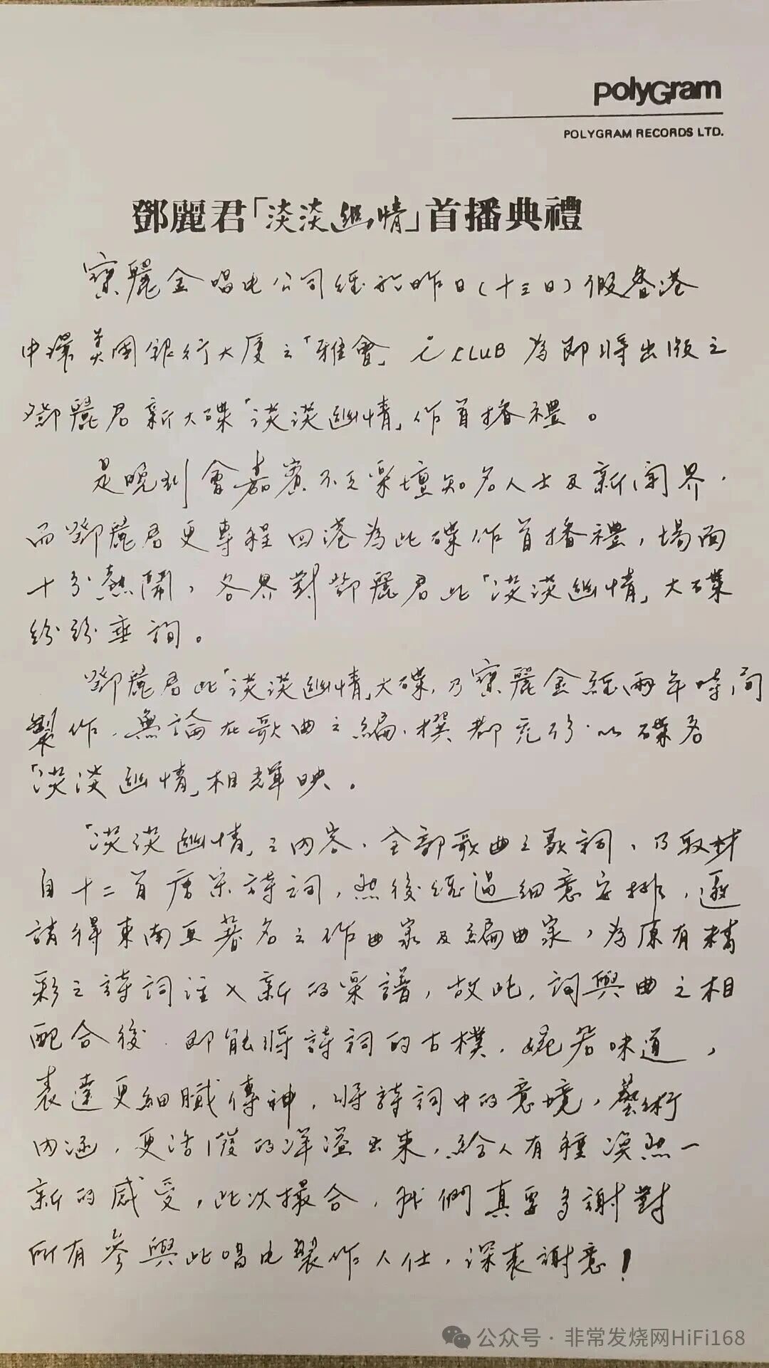 在邓丽君璀璨的音乐生涯中,1982底年发行的《淡淡幽情》无疑是一座难以逾越的丰碑。这张专辑不仅是华语流行乐坛首张将古典诗词与现代音乐完美融合的跨界之作,更因其超凡的艺术价值与录音品质,成为无数发烧友心中永恒的“试音天碟”。而在众多版本中,流传于电台的推广版黑胶唱片,则承载着一段更为独特和珍贵的历史记忆。