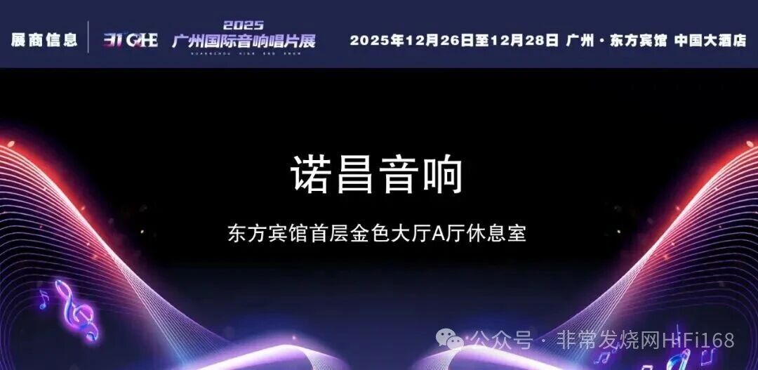 2025广州国际音响唱片展将于12月26-28日在广州东方宾馆和中国大酒店举行。作为目前国内规模最大、全球第二大的民用音响展览,广州国际音响唱片展每年吸引超过200位参展商展示的超过1000个高端国际音响品牌。