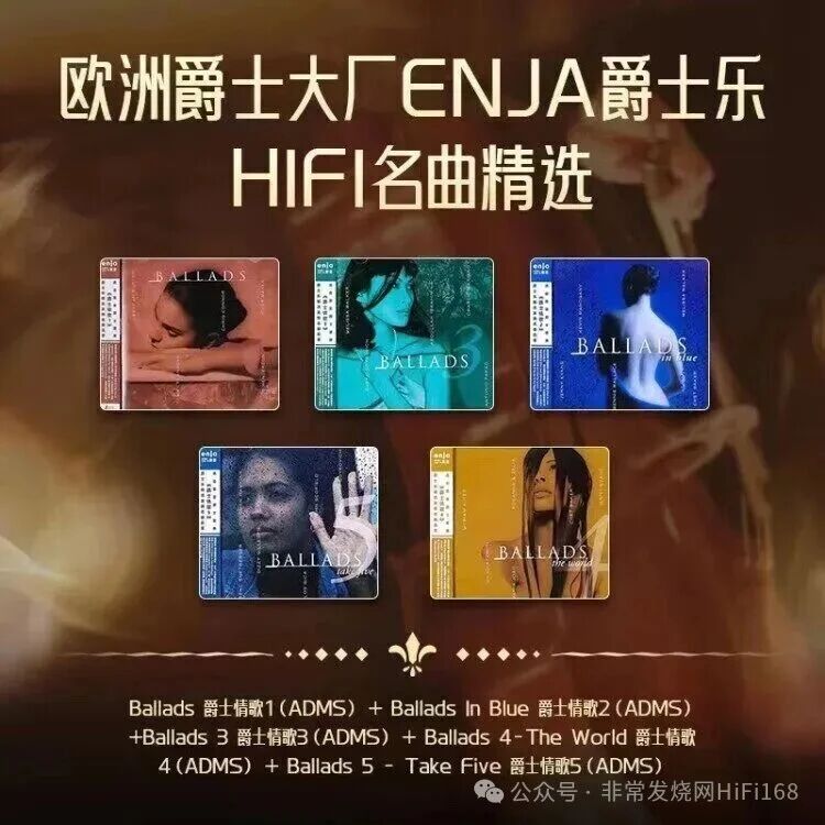 欧洲爵士大厂ENJA 爵士乐HIFI名曲精选集 “爵士情歌1-5” 德国恩亚(ENJA)每个系列精选合集中,每首作品皆是经典杰作;每份录音都以发烧级水准制作,品质一流闻名于世;每张专辑皆为精品! 当中就好比“ballads 爵士情歌”系列,它们记录着ENJ -