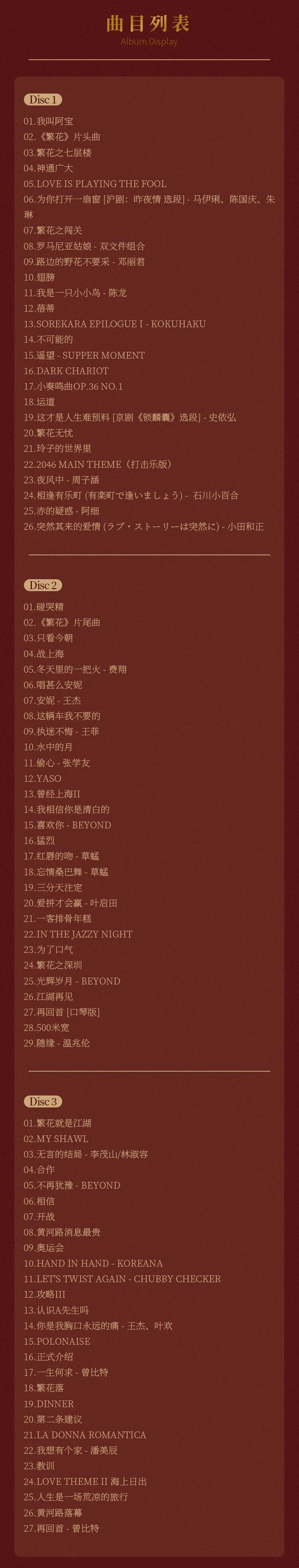 不仅如此,当中还有与王家卫交情甚好的梅林茂先生与陈勋奇先生参与,以保证《繁花》配乐制作的超高水准,以及大提琴家马友友、钢琴家孔祥东的作品演绎和莫里康内的作品......