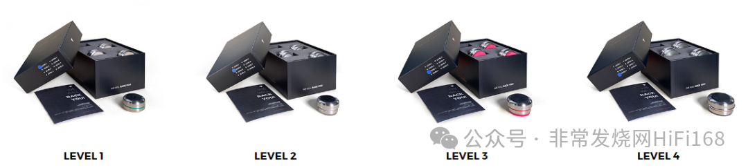 ULTRA 超越系列避震配件从LEVEL 1到LEVEL 8共8款产品,对应音箱、器材、唱盘等各种器材的避震。