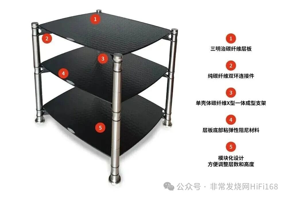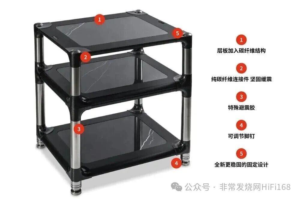 REVOLUTION-X革命系列代表着BAS最高的科技,更是业内唯一使用单壳体碳纤维的器材架。革命系列将碳纤维科技应用到了极致,BAS使用单壳体结构,在特定的模具下,将连接层板和立柱的X型支架结构一体成型。最低可达27Hz,114Hz以上几乎100%的抑制,如此的抑震效果可以说是器材架中的巅峰水准。不仅如此,三明治碳纤维结构的层板和弹性阻尼材料的应用更使其性能上一层楼。