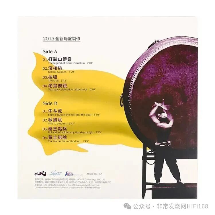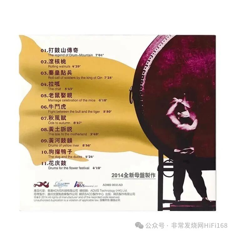 这张《绛州大鼓》20周年纪念版,是录音大师Leo Fung录音的精华,以卓越ADMS母盘调音技术调音,以ADMS Alloy Gold CD压片,音色更立体,音效更出色、澎湃,动态更胜从前,必然是乐迷值得珍藏之发烧天碟!