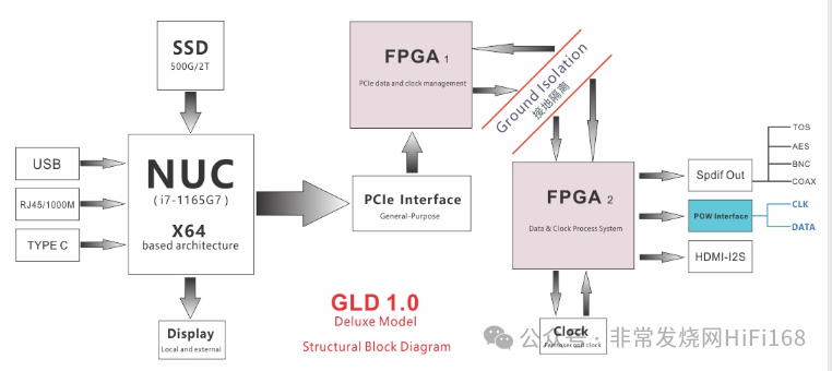 GLD1.0 是一款由多项创新技术支撑的高性能数字播放器,其数字时钟架构已获得国家发明专利。PCIe 同步传输技术
