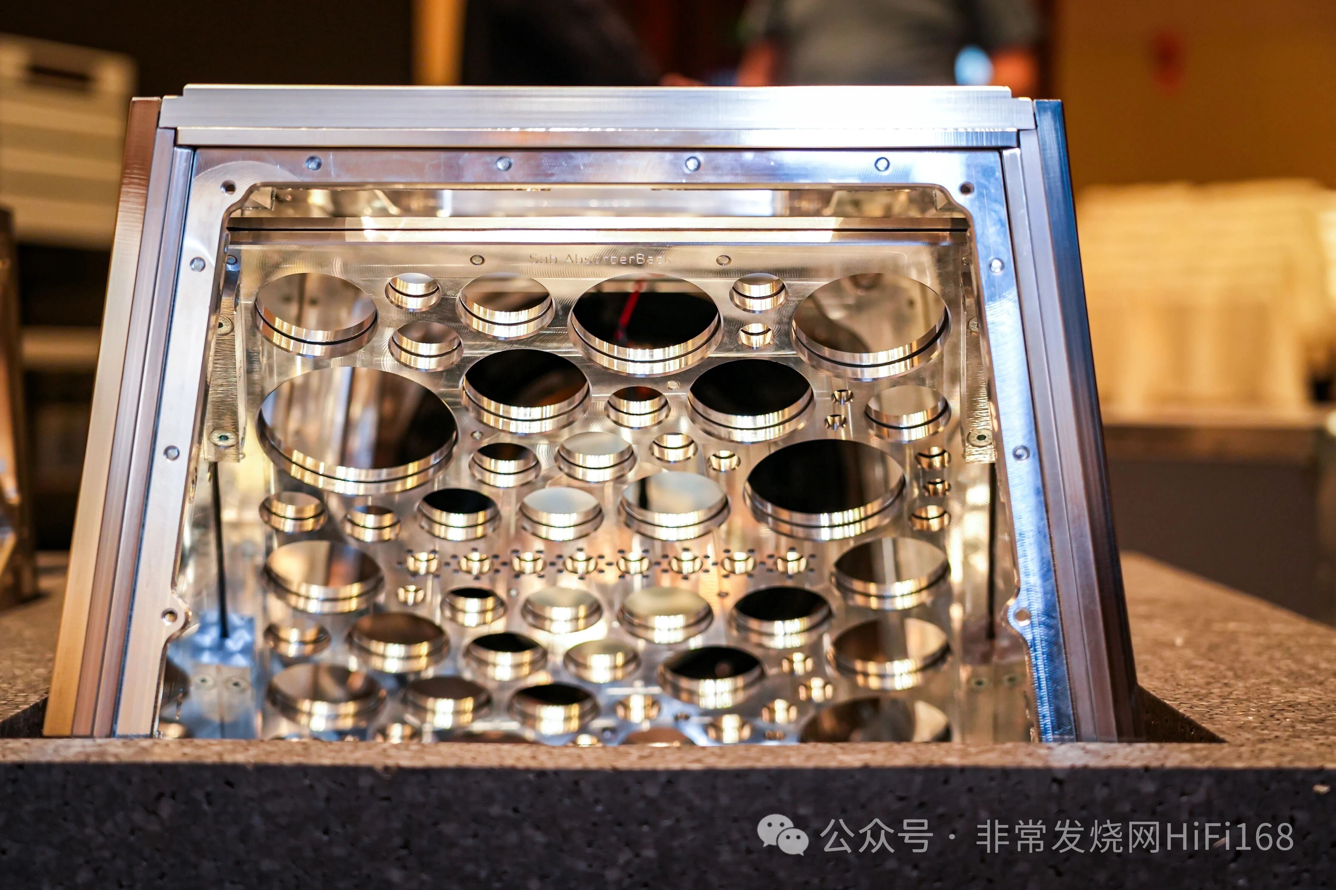 Lattice高音单元:由一块80克铝坯经CNC精雕为重量不足0.03克的复杂框架,其几何结构来自数百万小时的计算模型优化,精度达到小于0.001毫米。这种结构不仅提升了脉冲响应与带宽,同时显著扩大扩散角度,令最佳聆听区更宽阔。