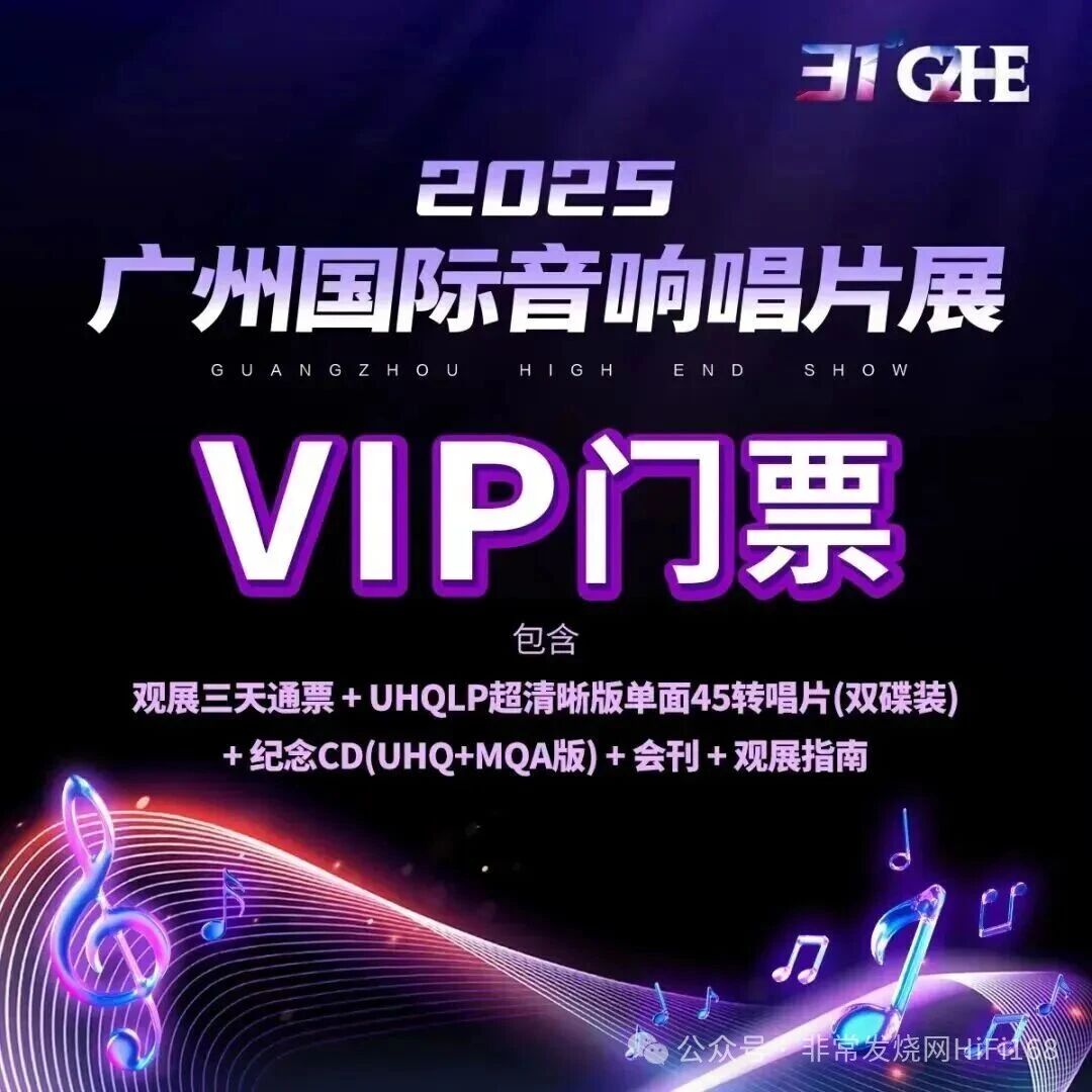 VIP门票含金量天花板,库存告急!限量 1000套 VIP 门票(售价398元),因内含的纪念唱片和纪念CD采用“双碟装单面45转UHQLP超清晰版”及“日本制造的UHQ+MQA版纪念CD”,被誉为展会创办以来“含金量天花板”!目前库存所剩无几,售完即止,手慢无!