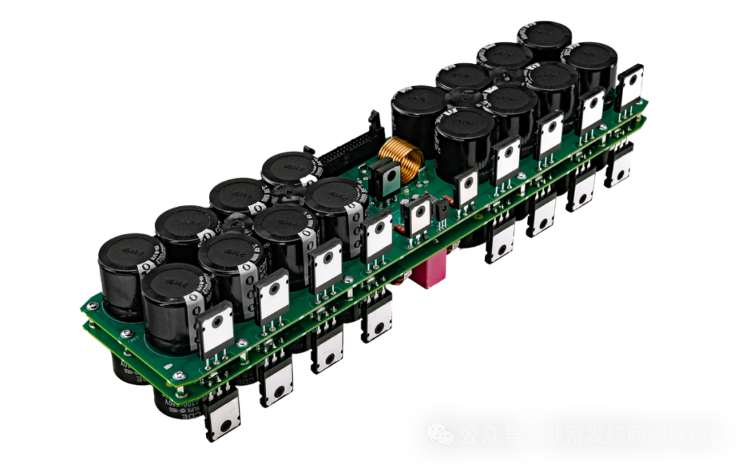 传统A类电源的原理是产生开关噪声。当大容量电容器需要从变压器吸收电流时,就会产生这种噪声。只有当外部电压较低时,电流才能流入电容器,因此当需要电流时,电容器两端的电压会低于50/60Hz的频率。虽然被定义为线性电源,但这类电源内部存在大量的瞬态电流。Aavik880功放配备了四个500W功率因数校正谐振模式电源。这些500W电源与超大容量的电源组相结合,意味着该功放可以提供超过80A的峰值电流,因此Aavik 880功放的电源不会限制您在瞬态过程中输入到扬声器的电流,而且它们也不会发生开关动作。