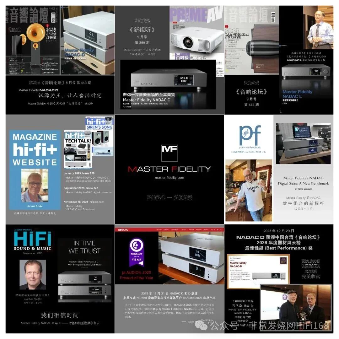 MF 的 NADAC 系列⾯世不⾜两年时间,但已在欧洲、北美、⽇本和中国台湾收获了众多的赞誉。英国的《Hi-Fi +》 、德国的《HiFi Sound & Music》 、美国的《pt.Audio》 、⽇本的《Stereo Sound》以及中国台湾的《⾳响论坛》等著名 Hi-End ⾳响杂志和媒体平台,及其权威评论家,均不吝溢美之词,对NADAC 的技术架构、 声⾳素质以及⾳乐表现⼒, 给予了⾼度的评价。 ⽽那些已经拥有了新⼀代 NADAC的发烧友,也⽆不为其收获的聆听感受⼤点其赞。⽆论是评测权威还是资深烧友,为 NADAC 所凝练出的精简结论就是:“它是⾳乐⾳响步⼊数字时代以来,最为趋近于模拟⺟带⾳质的数字设备!”这无疑是对 NADAC 系列声音品质的最⾼褒奖。这也完美契合了公司名称 Master Fidelity 的 “母带传真” 之意。同时也实现了 Master Fidelity 青出于蓝而胜于蓝的愿景。
