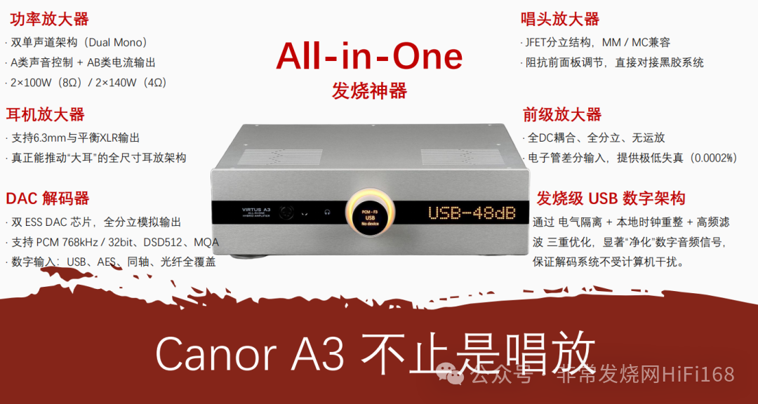 采用混合式双单声道架构,前端真空管精准还原港乐女声的细腻质感与层次,后端提供稳定驱动力,确保音乐清晰有序、动态饱满。其内置唱放支持MM与MC唱头,可灵活匹配现场设备,完美适配黑胶分享场景