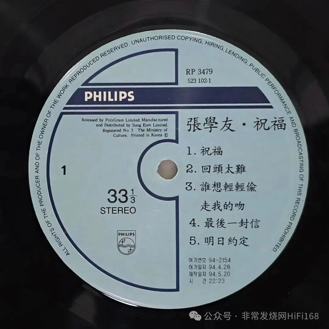 1993年香港地区黑胶唱片生产线已经全面停产,所以歌曲的黑胶版本出现在他的国语专辑《祝福》中,由韩国压片,数量稀少,如今一碟难寻。